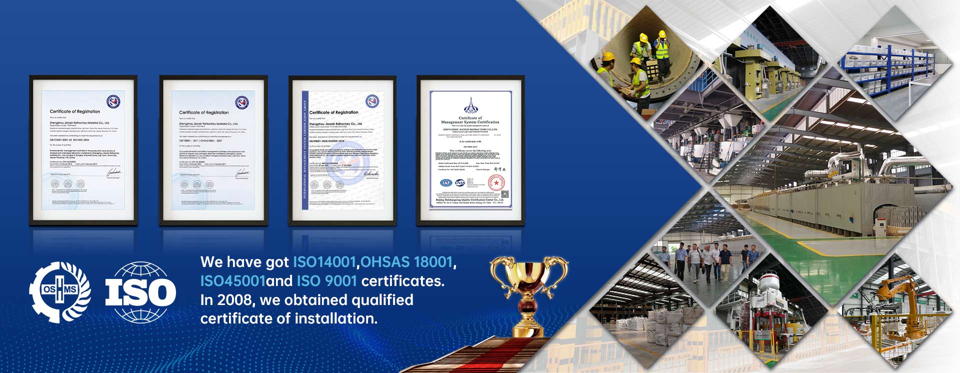 公司致力于耐火新材料、新技術(shù)、新產(chǎn)品的開發(fā)和推廣應(yīng)用,是國家高新技術(shù)企業(yè),產(chǎn)品先后通過了ISO9001質(zhì)量管理體系、ISO14001環(huán)境管理體系、GB/T28001職業(yè)健康安全管理體系認(rèn)證,同時具有防水防腐保溫工程專業(yè)承包貳級資質(zhì)、冶金工程施工總承包叁級資質(zhì)、環(huán)保工程專業(yè)承包叁級資質(zhì)。